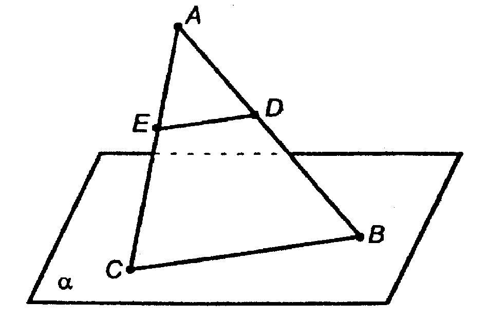 Так как α||DE, то DE||BC исходя из того что ∠A-общий, а ∠ADE = ∠ABC (соответственные при DE||BC и пересекающей их BA) ⇒ ΔABC и ΔADE - подобны.