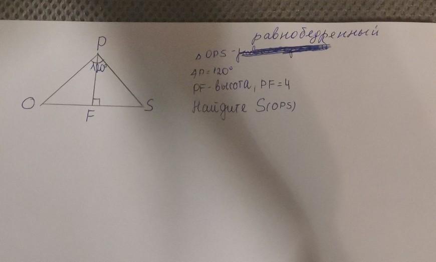 ∠OPS = 120°, следовательно ∠POS = ∠PSO = (180-120)/2 = 30°