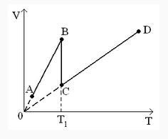 Зависимость давления газа от температуры для данный массы газа представлена на рисунке. Что произошло с газом при температуре Т1, если процесс протекал в направлении OBCD