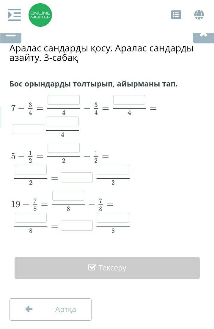 1. 7-3/4= 28/4-3/4=25/4= 6 1/4
