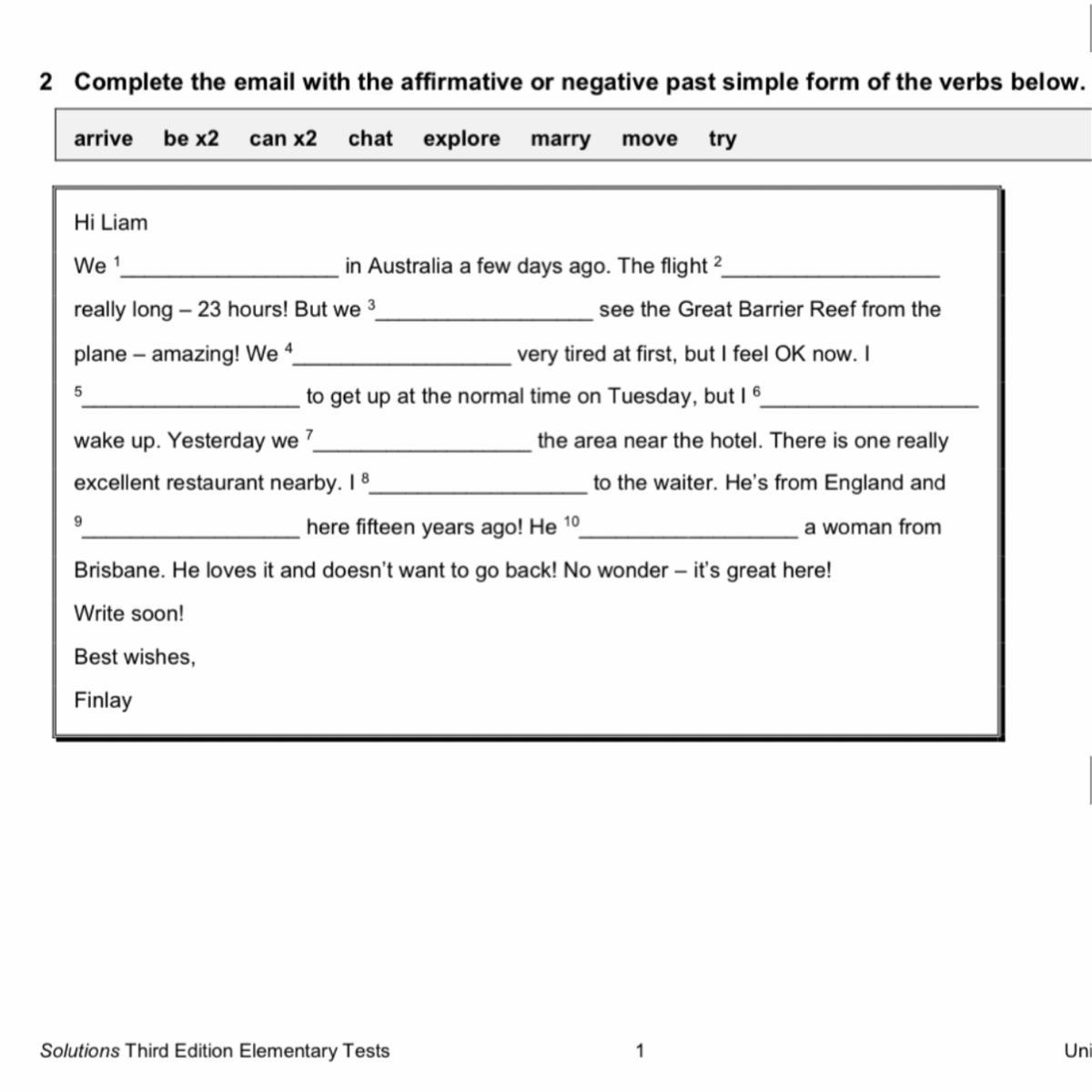 1) arrive 2)be 3)move 4)marry 5)chat 6)can 7)explore 8)can 9)be 10)try