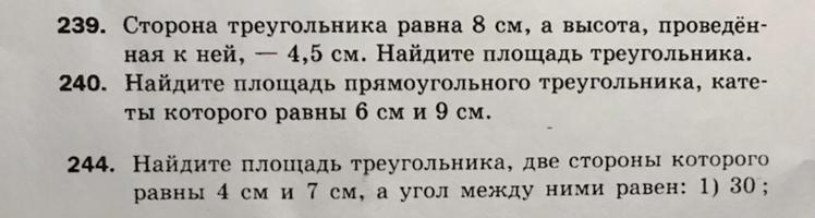 239. S=a·h·1/2 = 8·4,5/2 = 18