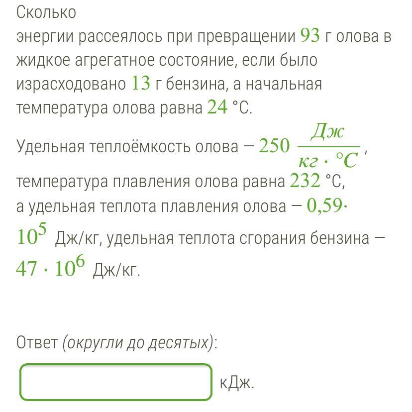 Итого, чтобы нагреть олово до температуры плавления а потом расплатить потребуется Q=Q1+Q2=cmΔT+λm=m(cΔT+λ)