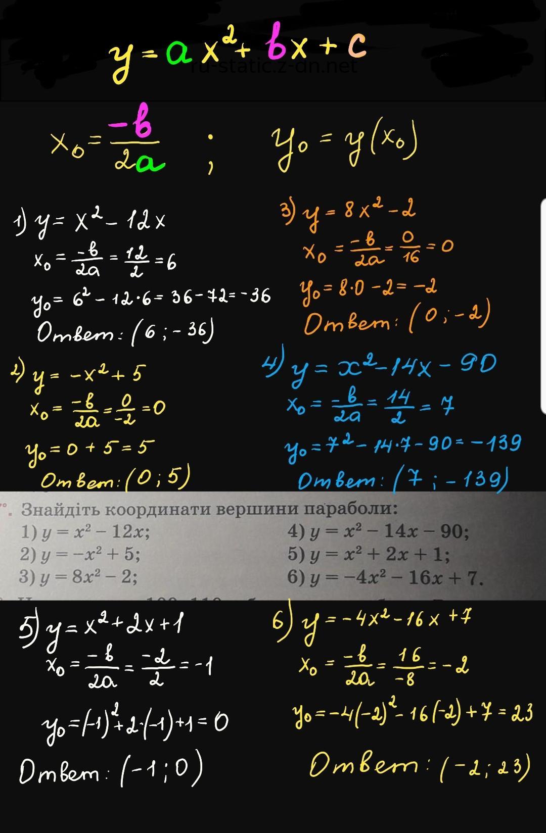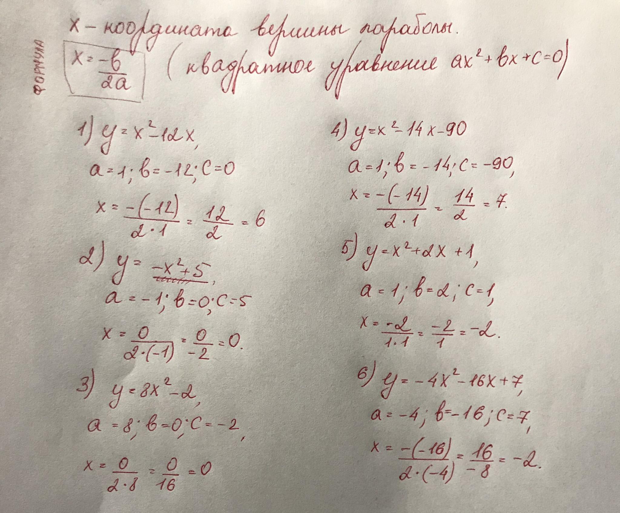В уравнении вида: у = - х² +5 , а = -1 ; b =0 ;c = 5,следовательно х0 = 0, т.к -b =0