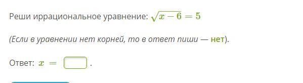 x-6 под корнем =5, возводим обе части в квадрат ².