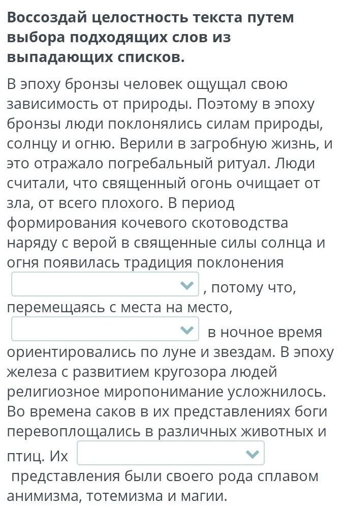 Воссоздай целостность текста путем выбора подходящих слов из выпадающих списков. помогите пожалуйста