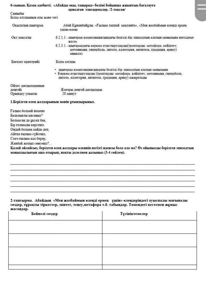 Ал енді өзіңнің ойыңнан жаз мақул ма
