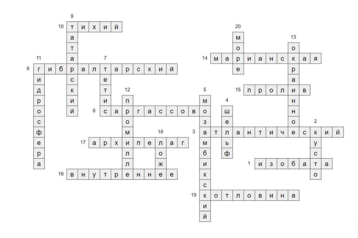 Помогите пожалуйста составить кроссворд из 15 вопросов на тему " Ресурсы Мирового океана "