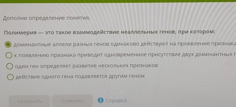 Ответ: Полимерия - это такое взаимодействие неаллельных генов, при котором: доминантные аллели разных генов одинаково действуют на проявление признака.