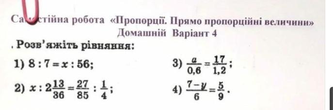 1) x = 64 ; 2) x = 3 ; 3) a = 8,5 ; 4) y =