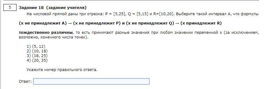 Начнём методом подбора присваивать переменной х разные значения так, чтобы первая принимала значение истина, а вторая - ложь, и наоборот. Получается, что такой отрезок (20, 35).