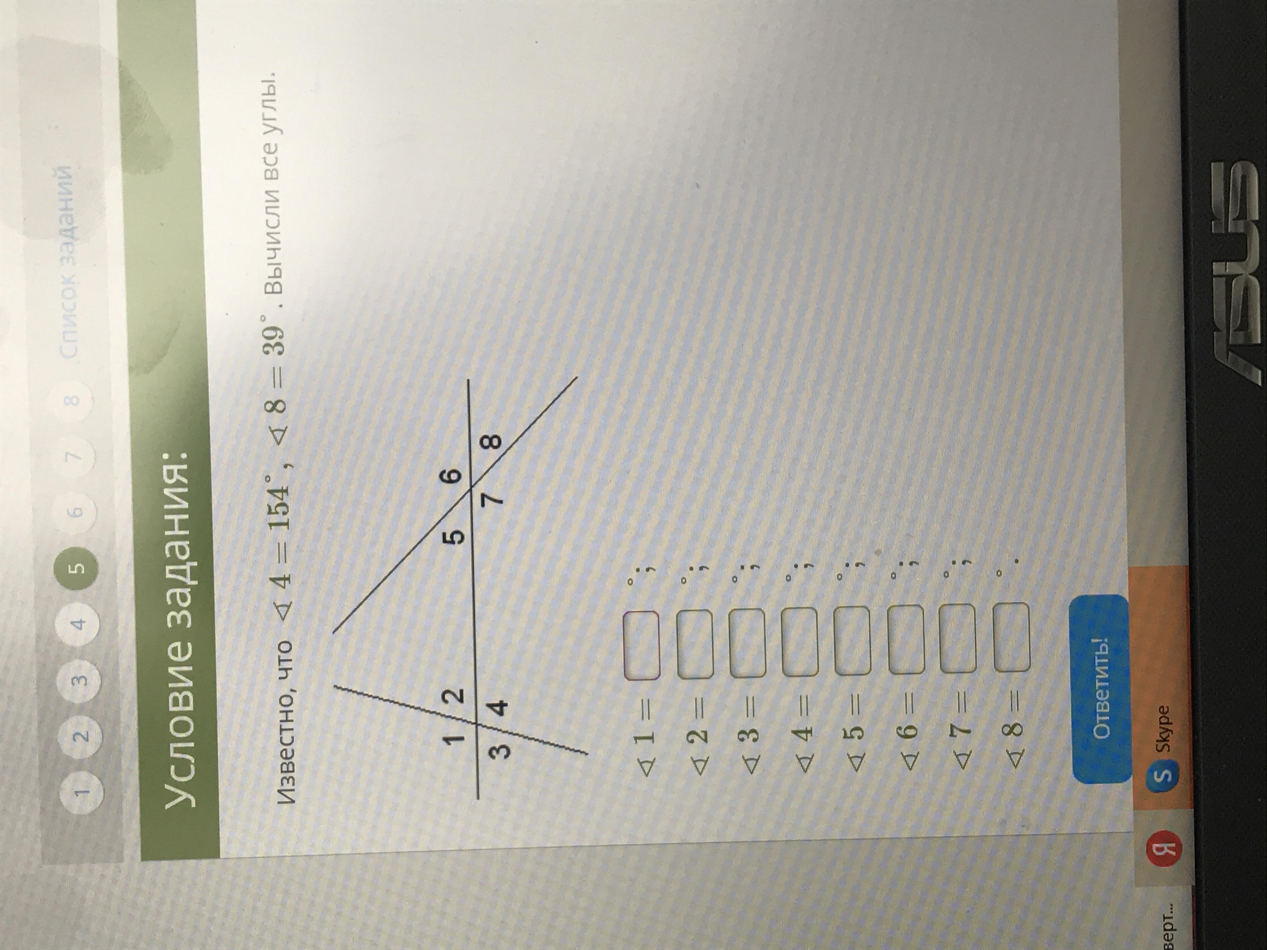 ∠5 = ∠8 = 33° (вертикальные углы)