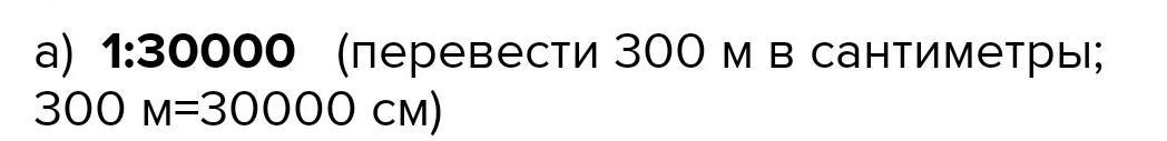 Ответ:1:30000 (перевести 300 м в сантиметры; 300 м=30000 см