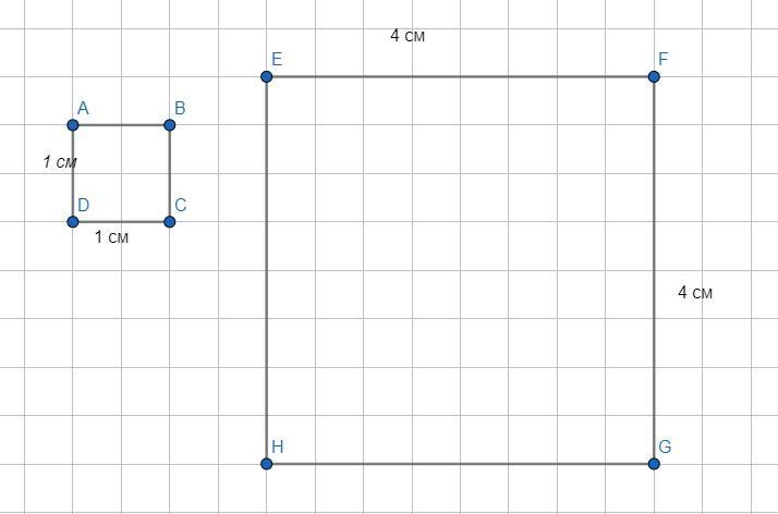 один квадрат 1 · 1 = 1 см², второй 4 · 4 = 16 см² , так как достаточно указать один вариант, дальше можно не проверять.