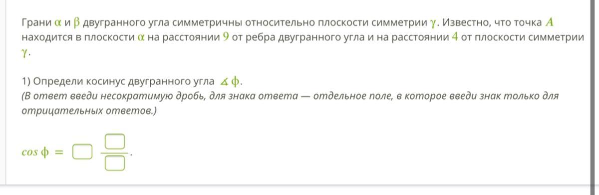 1) Определи косинус двугранного угла ∡ϕ.