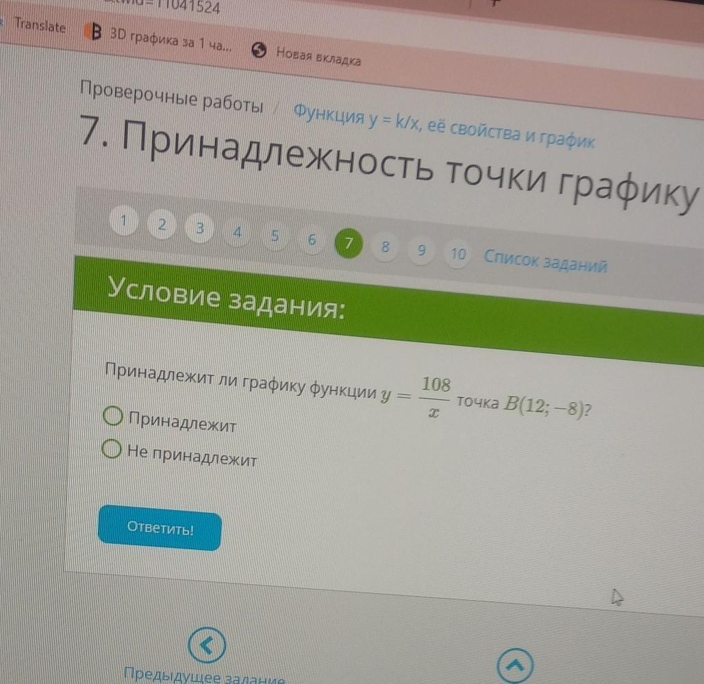Значит, точка В(12;-8) не принадлежит графику функции у=108/х