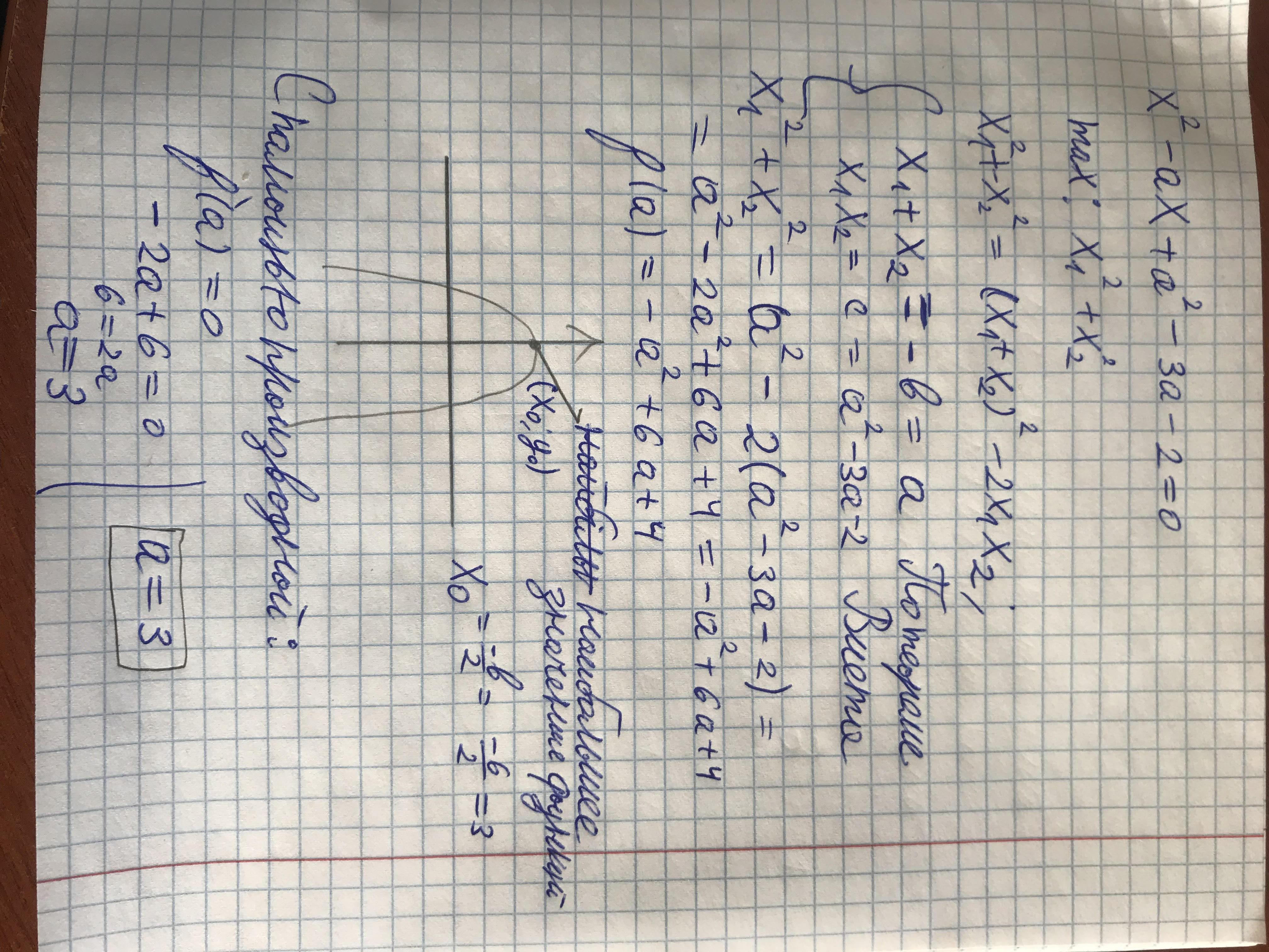 Смотрите фото(в вершине параболы функция достигает наибольшего значения)