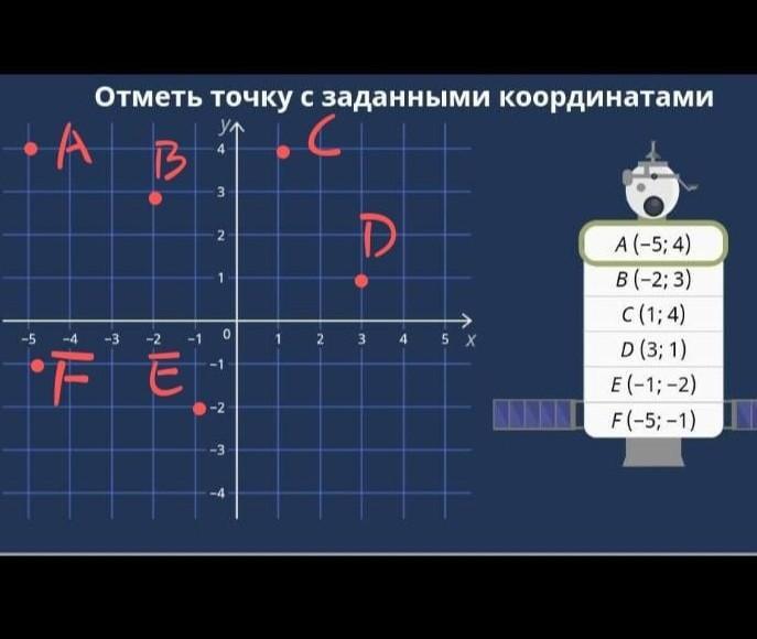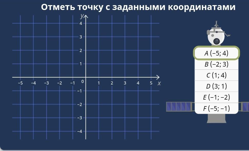 -5 это точка влево, точка 4 это вверх(A, -5; 4)