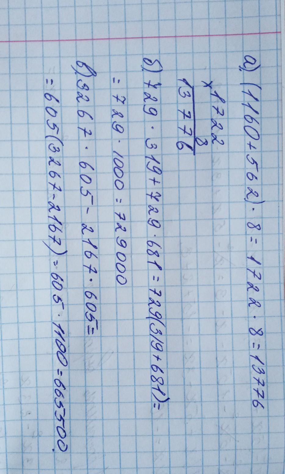 найдите значение выражения применив распределительное свойство умножения a) (1160+562)*8