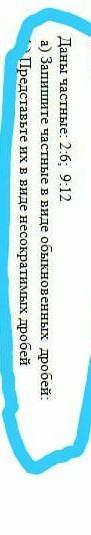 Пошаговое объяснение: а) пишешь в числителе 2 в знаменателе 6 - 2/6, потом пишешь в числителе 9 в знаменателе 12 - 9/12
