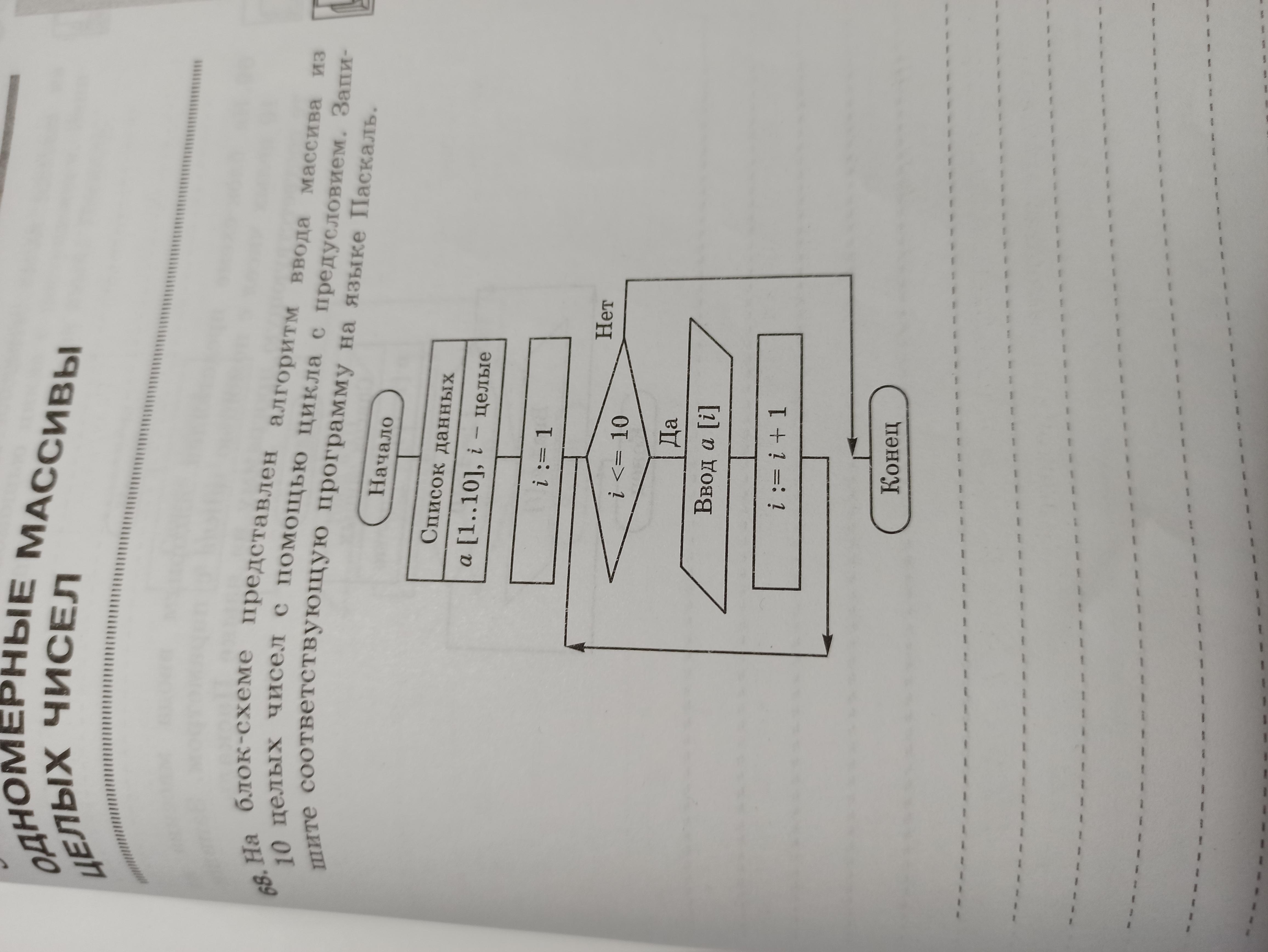 Помогите!! Информатика. На языке Python, не паскаль. На блок схеме представлен алгоритм ввода массива из 10 целых чисел с помощью цикла с предусловием. Запишите на языке Python