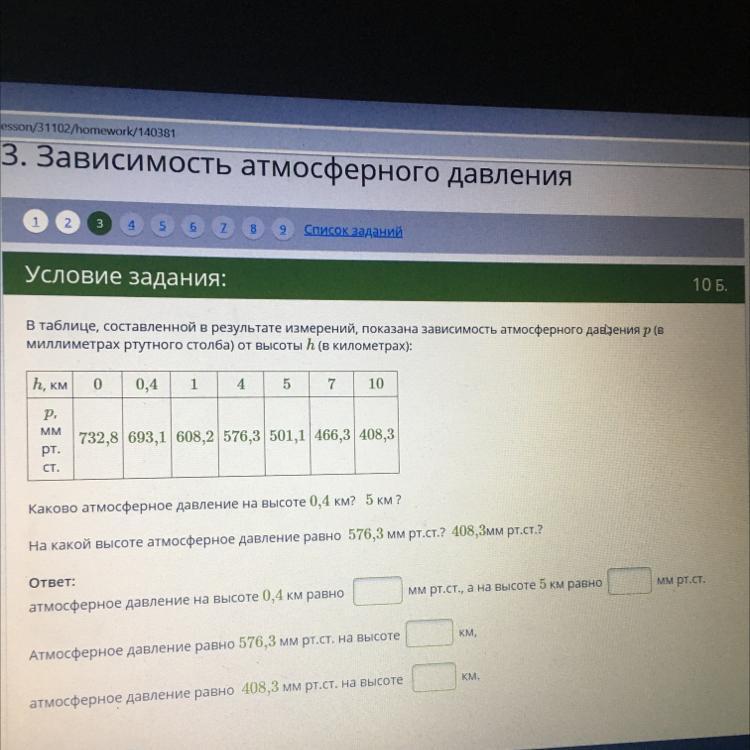 на высоте 10 км