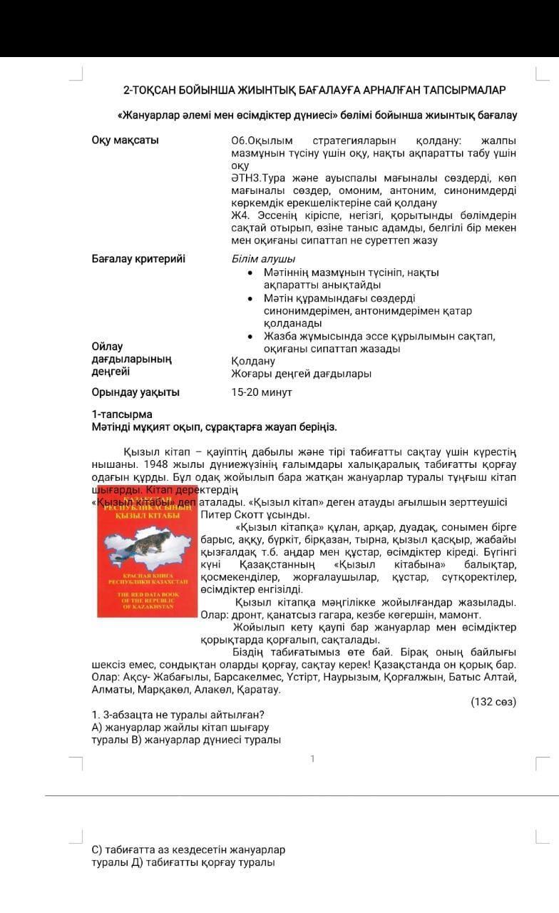 1 C) себебі бұл жерде жойылып бара жатқан аңдар туралы оны қорғам туралы жазылған