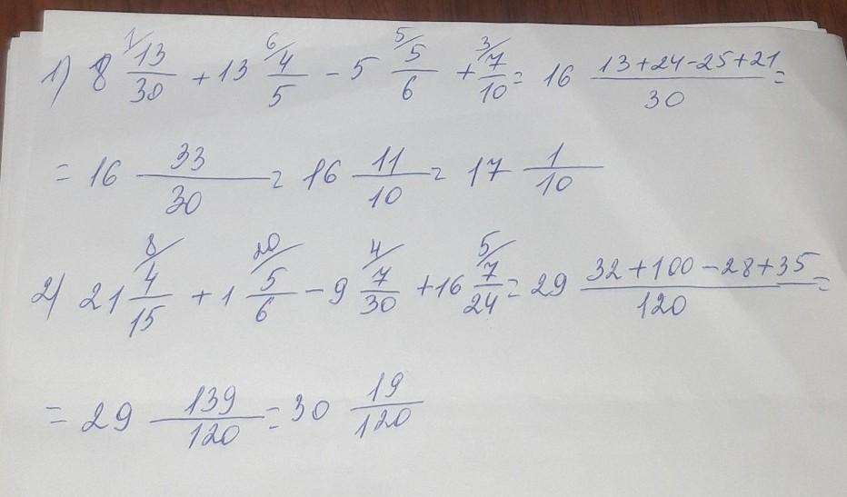 2) 8 13/30 + 13 4/5 - 5 5/6 + 7/10;