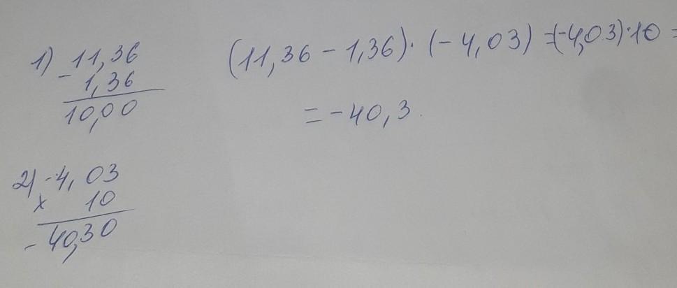 11,36×(-4,03)+(-1,36)×(-4,03) = -4,03 *(11,36 - 1,36) = -4,03 * 10 = -40,3