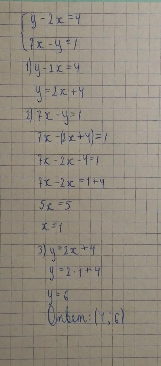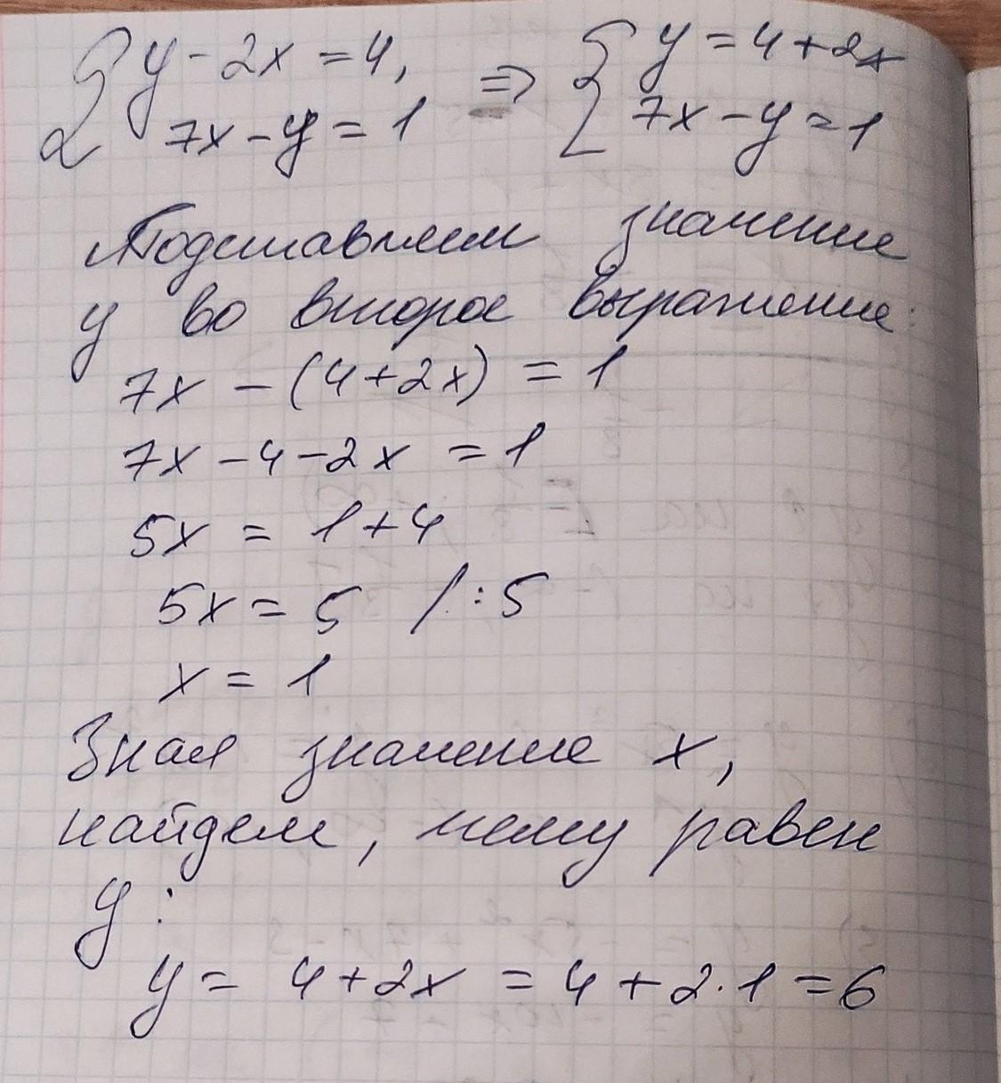 какое преобразование необходимо выполнить, чтобы можно было решить эту систему правнения? {у-2х=4{7х-у=1 СРООООООЧНО, 30 баллов даю