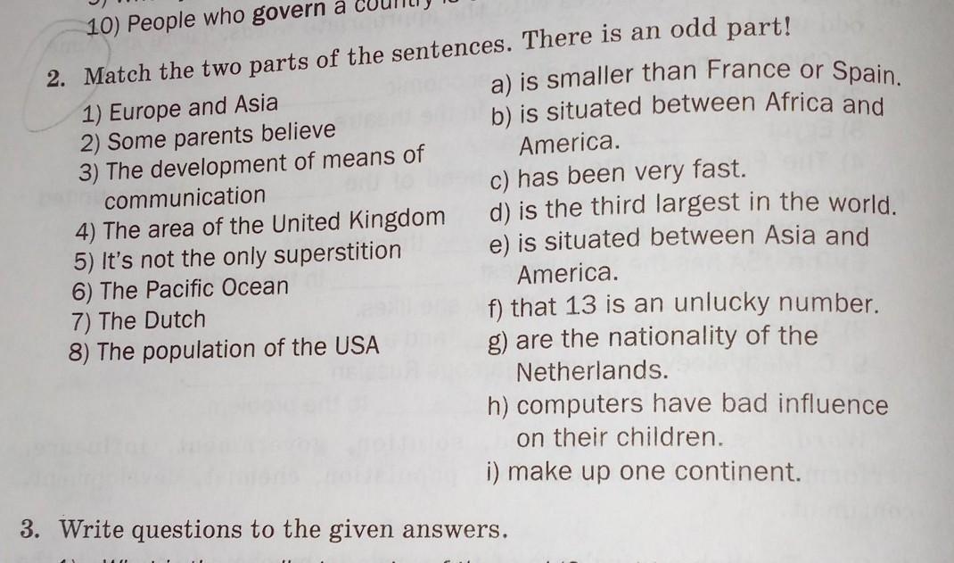 1) i) Европа и Азия составляют один континент (как я поняла, Евразия)