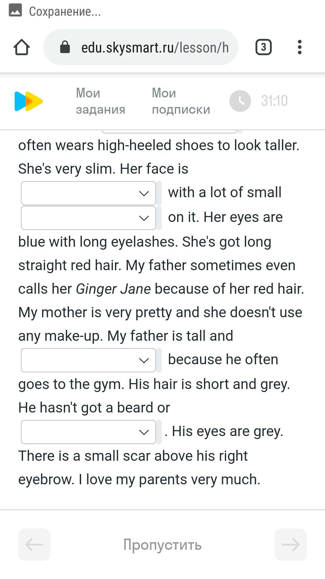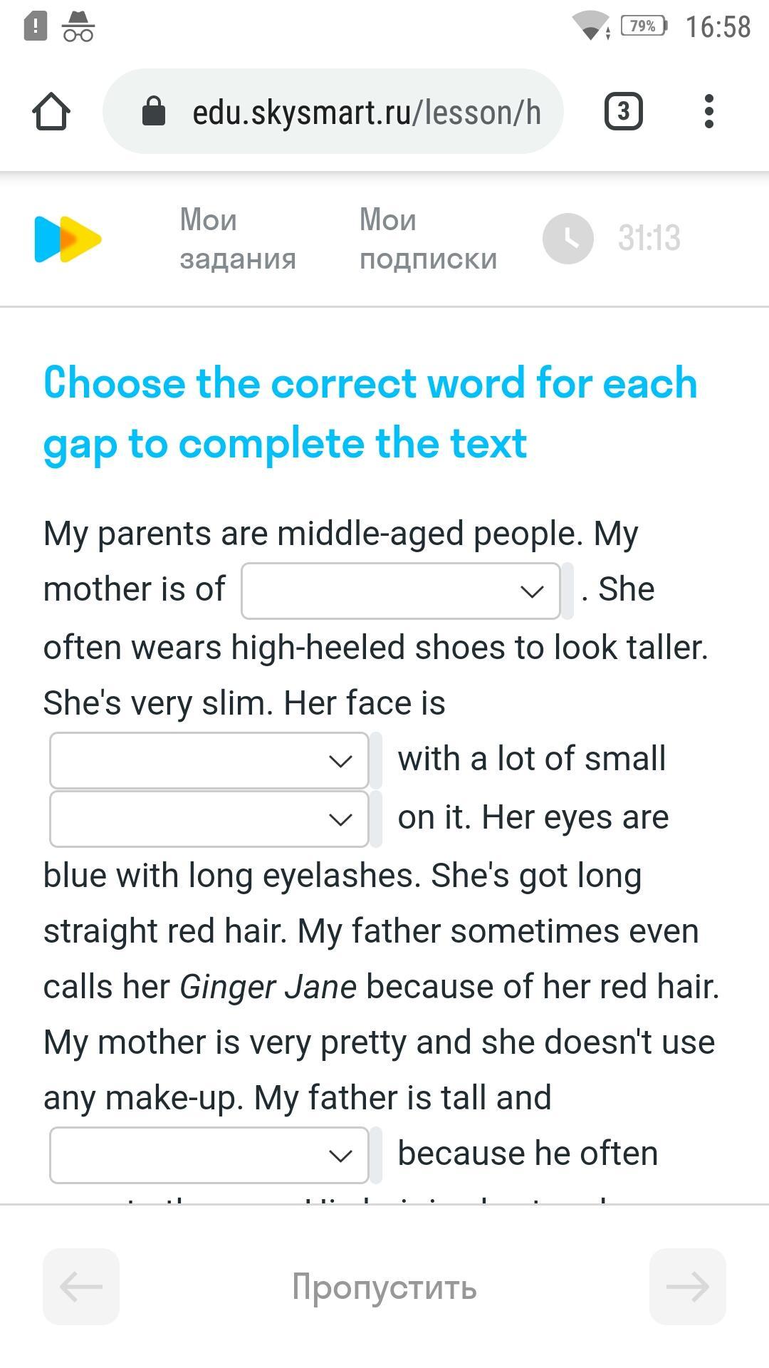 Для 1 задания слова которые вставить:freckles,heavily built,medium height,moustache round,plump,ugly