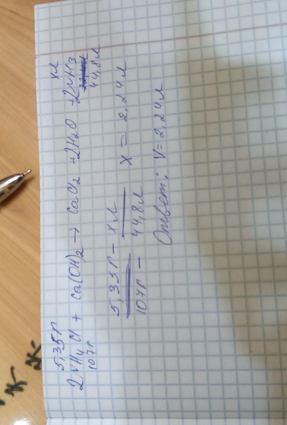 Какой объем аммиака (н.у.) можно получить при взаимодействии 5,35г хлорида аммония с гидроксидом кальция?