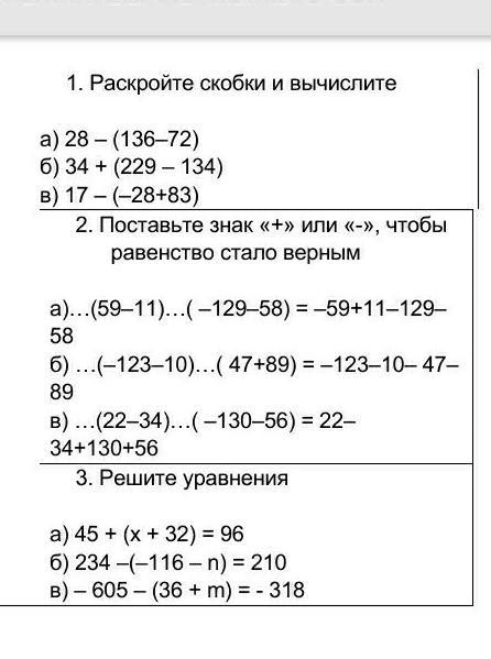 Ответ: 1.а) 28-(136-72)=28-136+72=100-136=-36