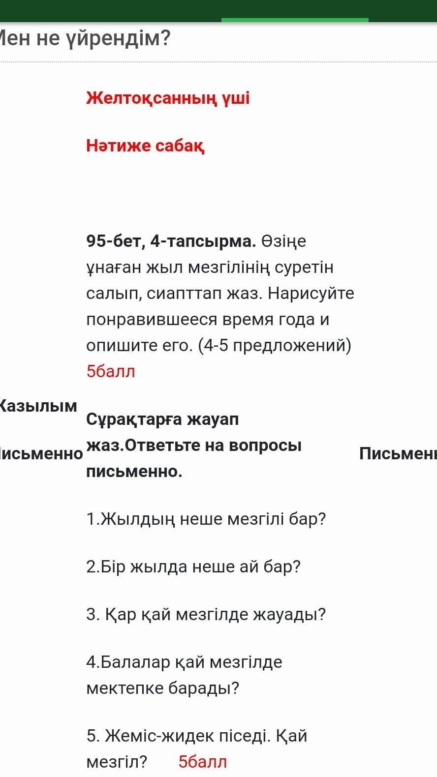 спасибо большое,а вот то первое задание то же помогите там любое время года например лето,описать на Каз яз немножко