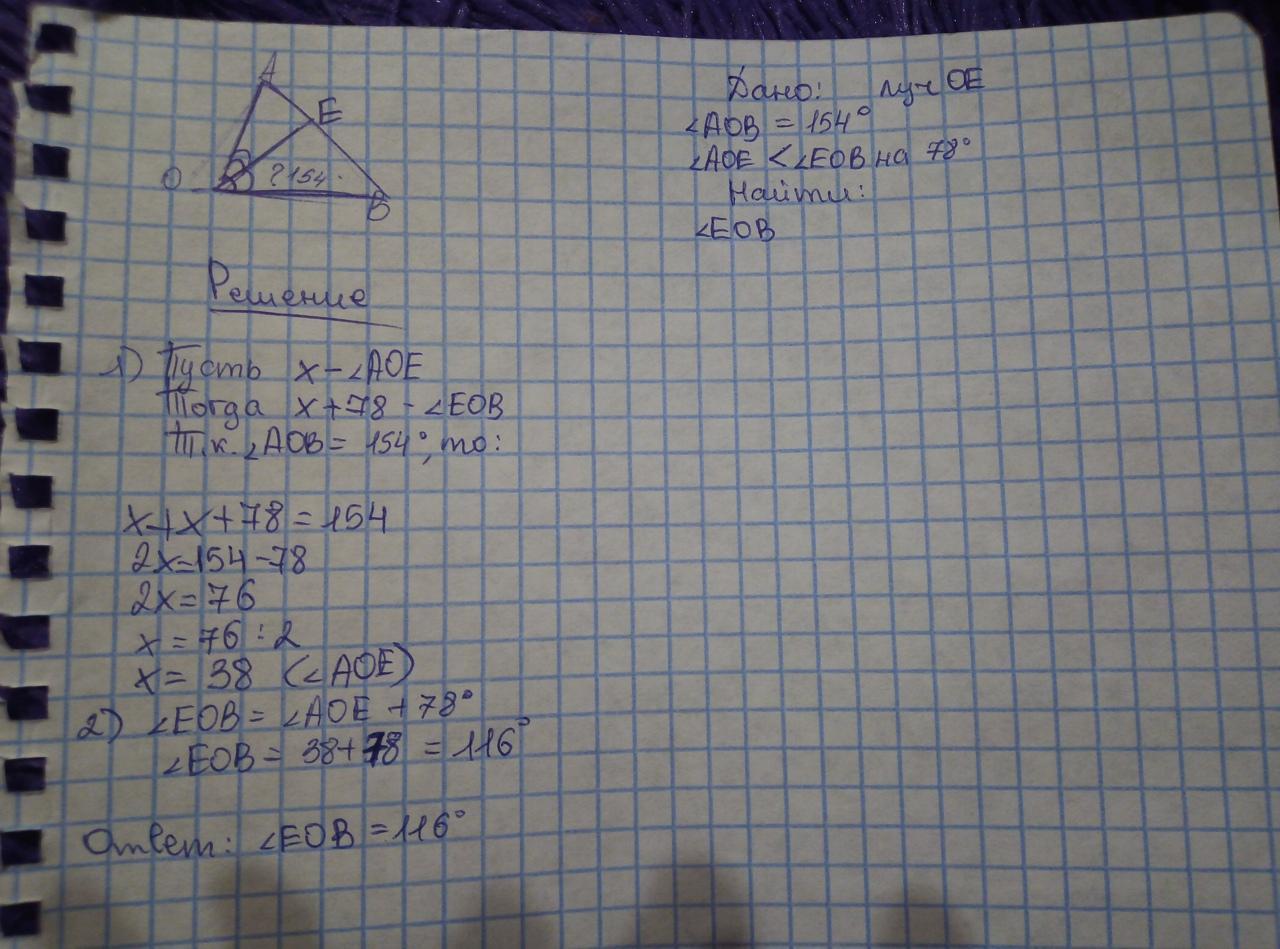 Пусть АОЕ-х, тогда ЕОВ=х+78