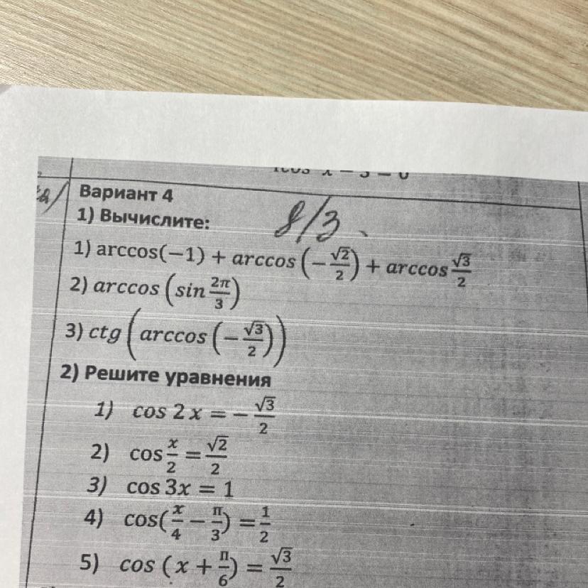 1) сos2x= - V3 /2, 2x=+_5p/6 +2pn, x=+-5p/12+pn, n E Z