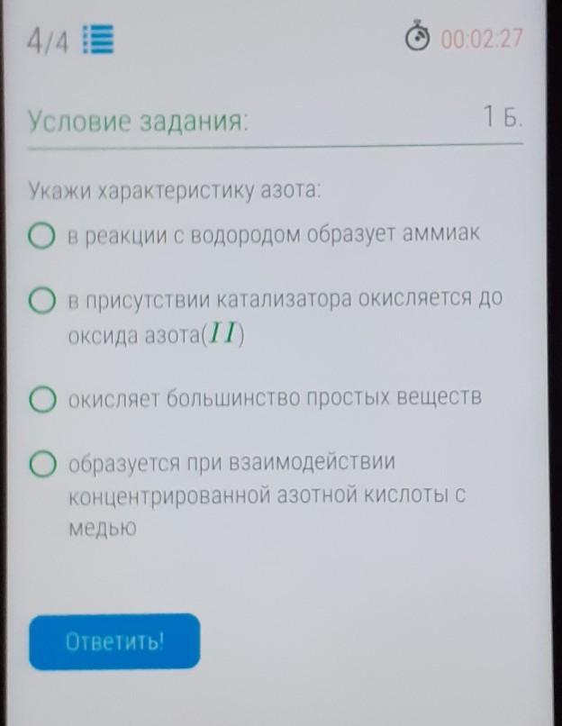 Хорошо изучены соединения азота с кислородом: N2О, NO, N2О5. С водородом азот соединяется только при высокой температуре и в присутствии катализаторов; при этом образуется аммиак NH3. С