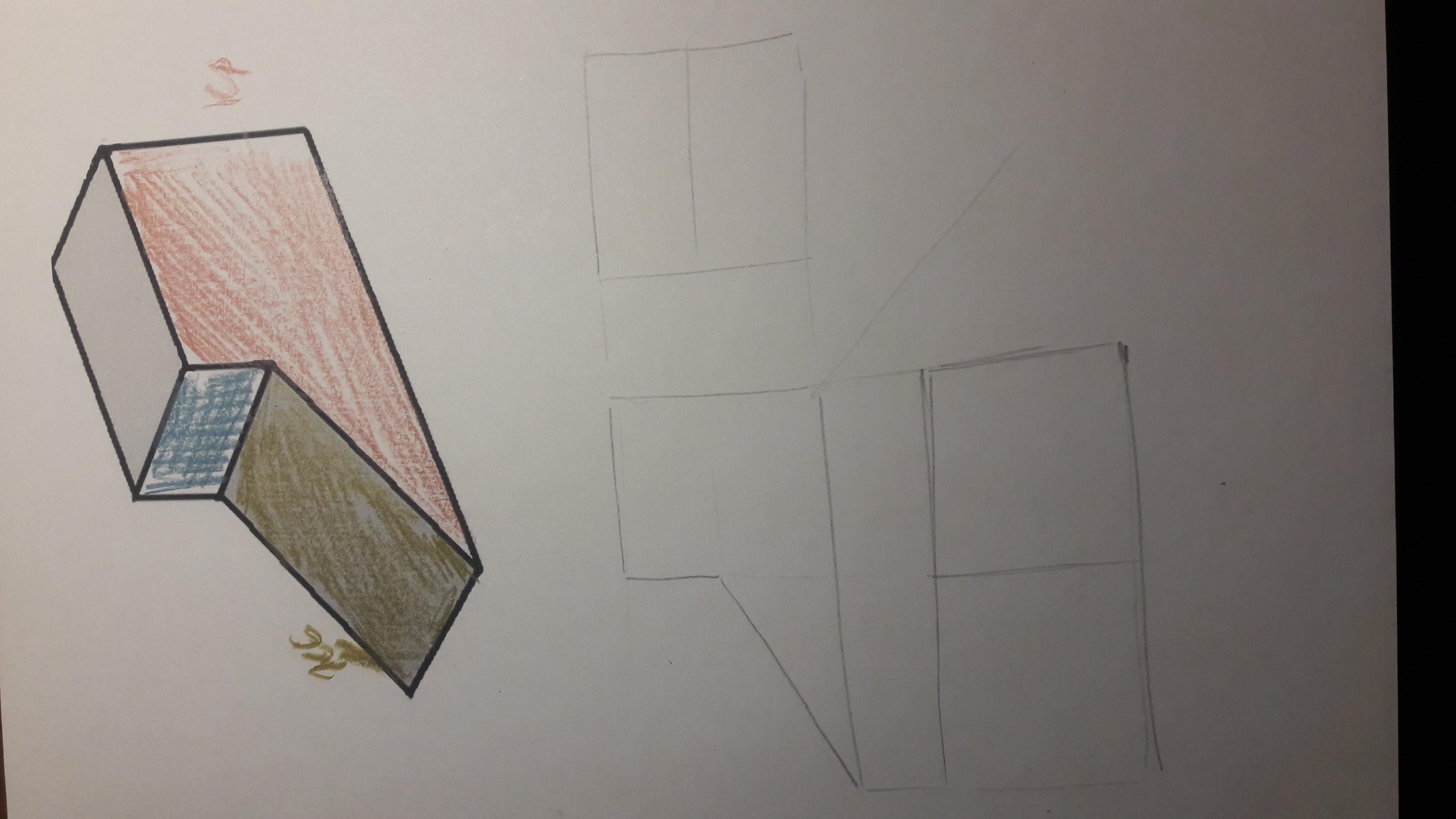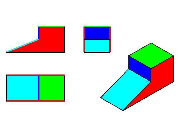 Черчение нужно на 3 видах закрасить определенным цветом стороны как на главном виде.