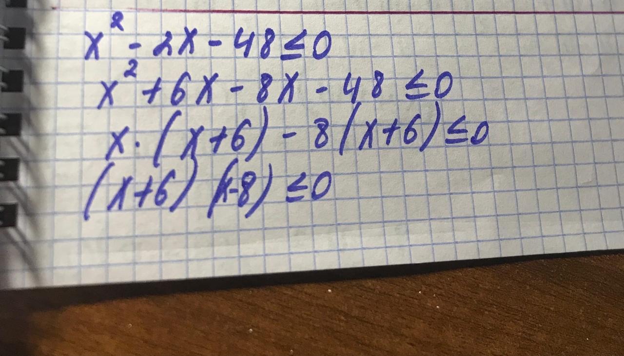 x^2+6x-8x-48≤0