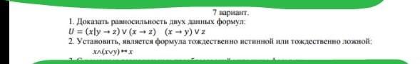 Срочно! Доказать равносильность двух данных формул. Установить является формула тождественно истинной или тождественно ложной