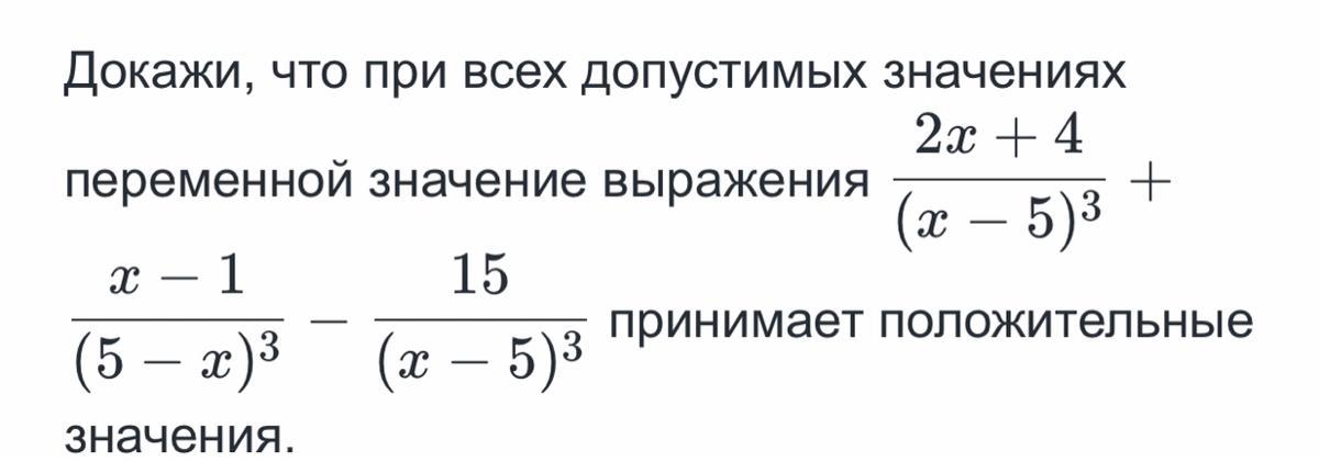 Доказать, что при всех допустимых значениях переменной значение выражения принимает положительные значения невозможно, так как на промежутке значений переменной от 5 до 10, выражение принимает отрицательные значения, к примеру, при значении x=6: