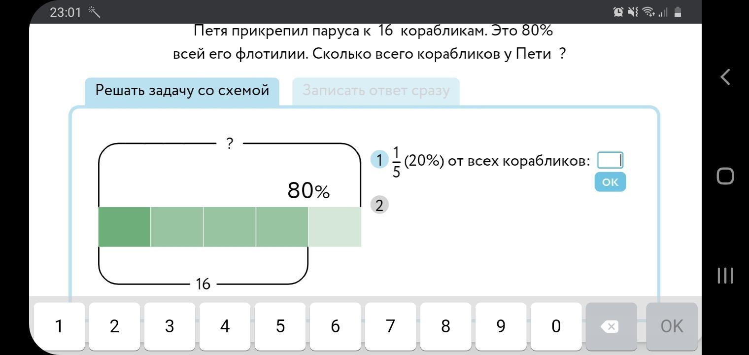 Петя прикрипил парус к 16 корабликам это 80% от всех сколько всего корабликов у пети?