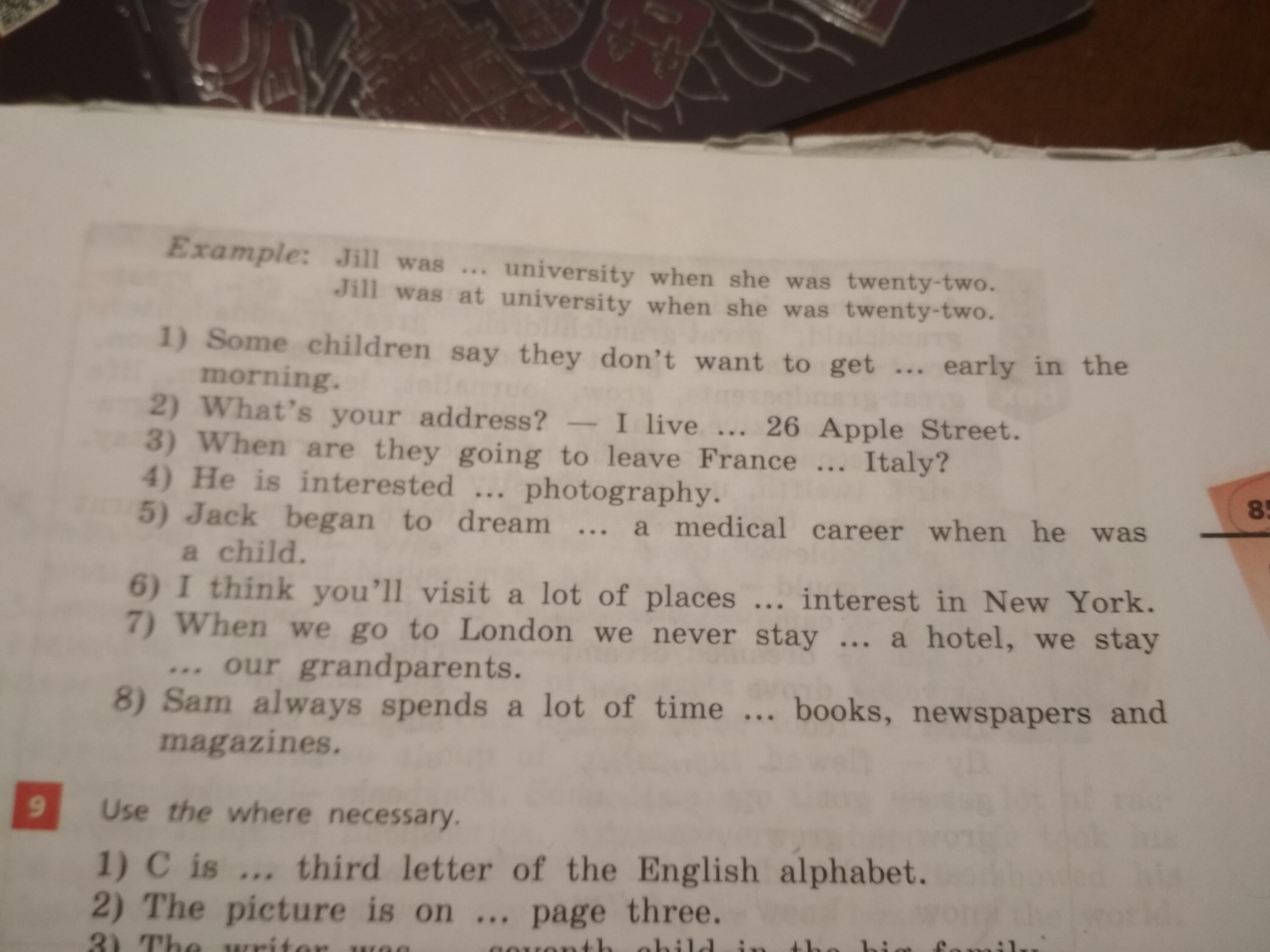 Complete the sentences example jill was ... University when she was twenty-two помогите пожалуйста решить