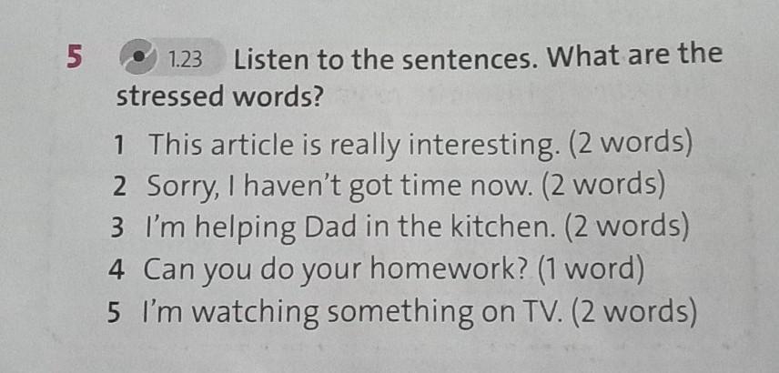 5 1.23 Listen to the sentences. What are the