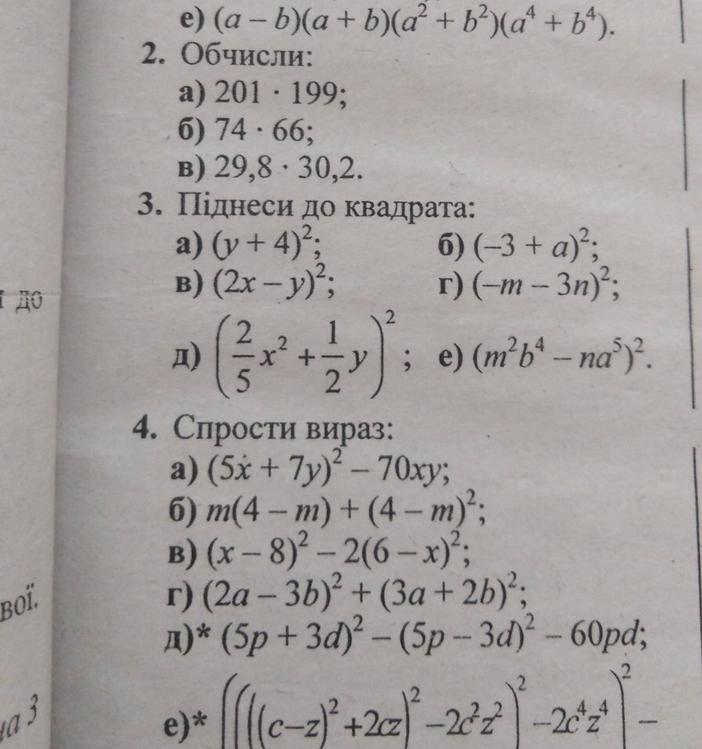 1. Виконати множення 2. Обчислити 3. Піднести до квадрата 4. Спростити