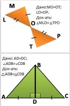 1)Т.к LO=OP и MO=OT, а углы LOM и TOP вертикальные - а соответственно равные, то треугольники LOM и TOP равны по I признаку равенства треугольников (по двум сторонам и углу между ними)