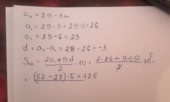 Арифметическая прогрессия задана формулой an = 29 - 3n. Найдите сумму первых 10 членов прогрессии. Сколько в данной прогрессии положительных членов?