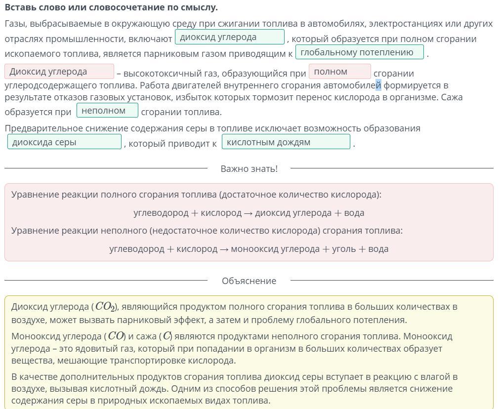 сгорании углеродсодержащего топлива. Работа двигателей внутреннего сгорания автомобилей формируется в результате отказов газовых установок, избыток которых тормозит перенос кислорода в организме. Сажа образуется при________сгорании топлива.