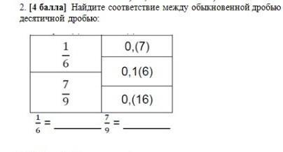 Найдите соответствие между обыкновенной дробью и бесконечной периодической десятичной дробью